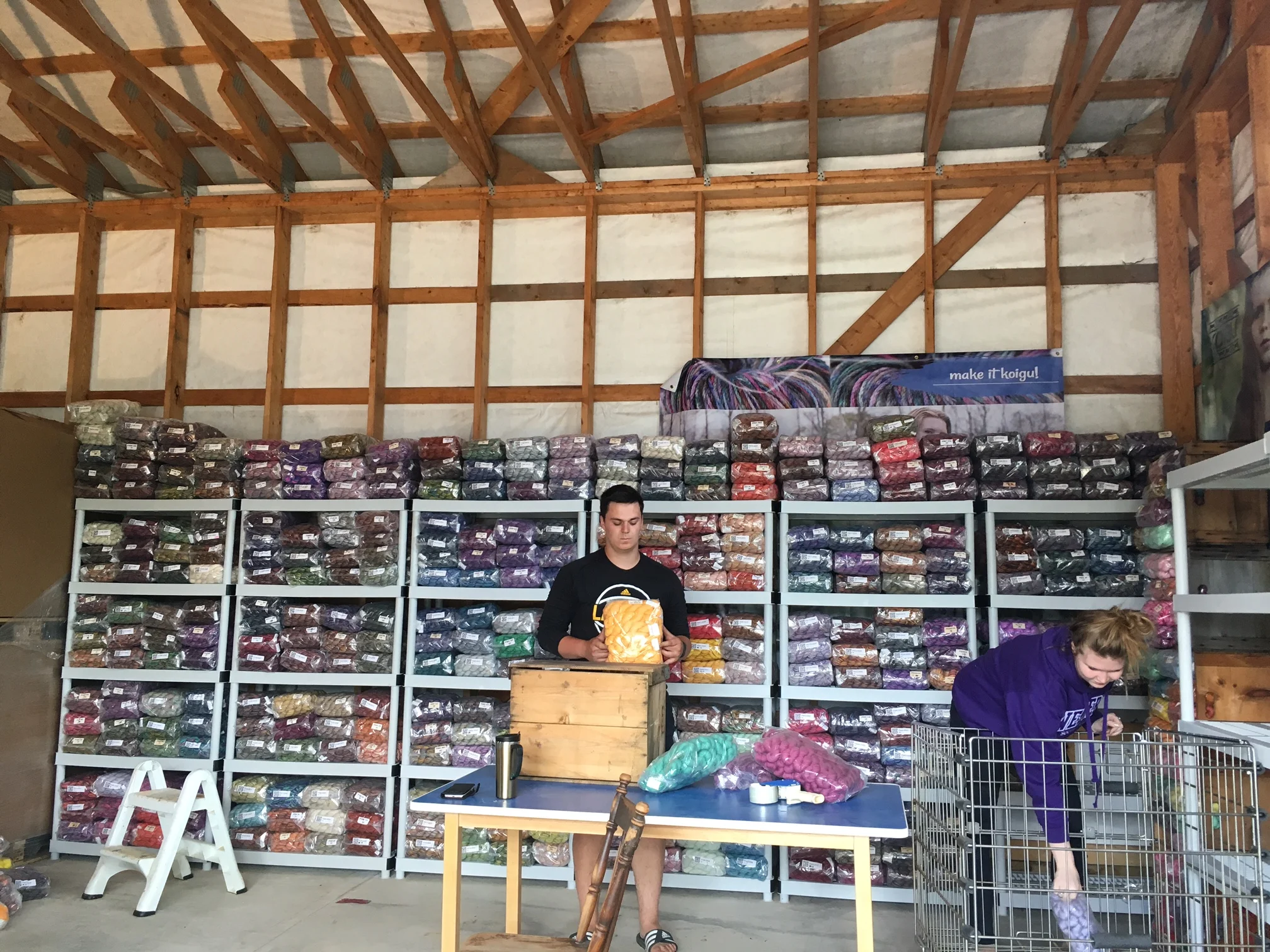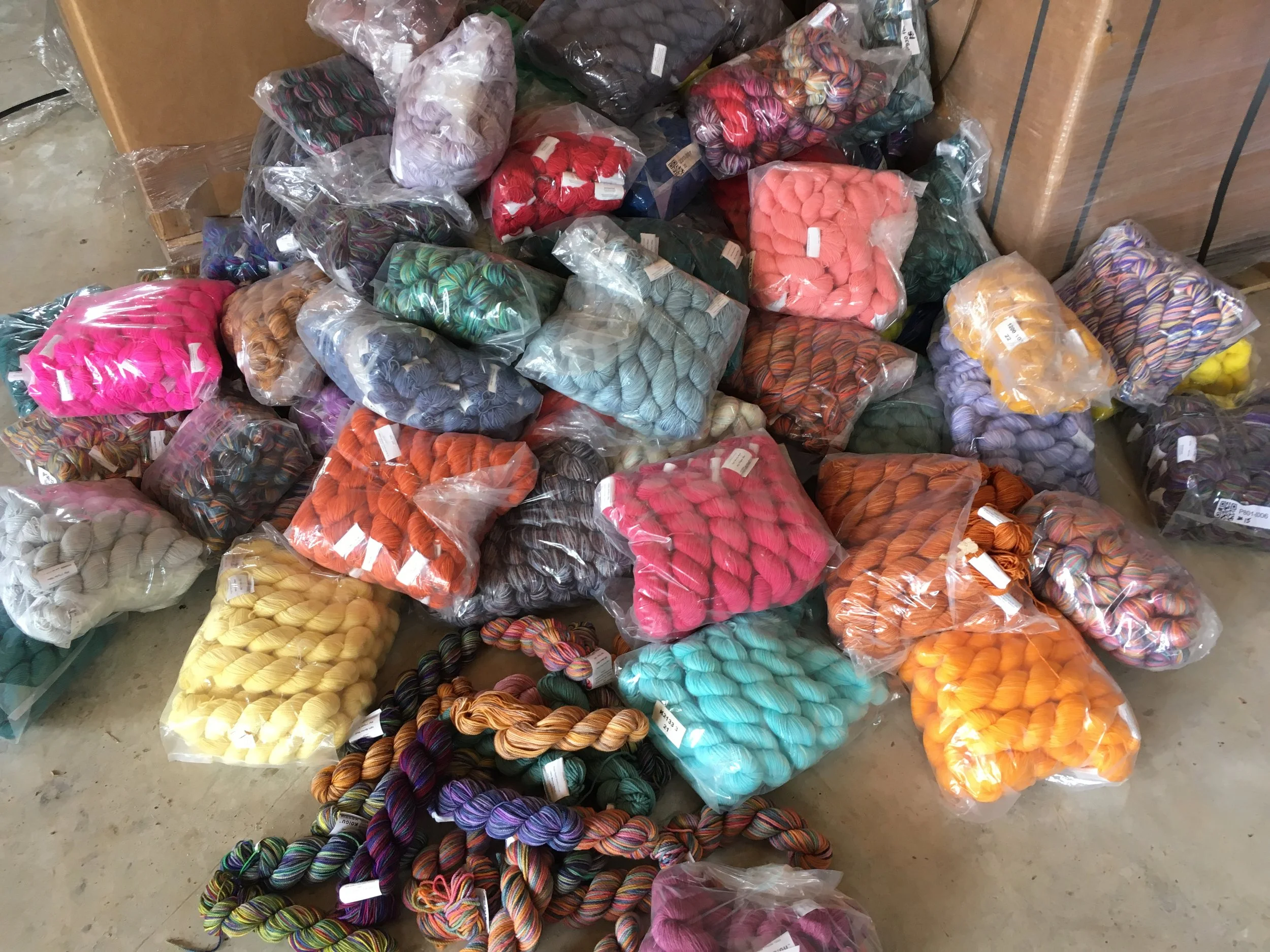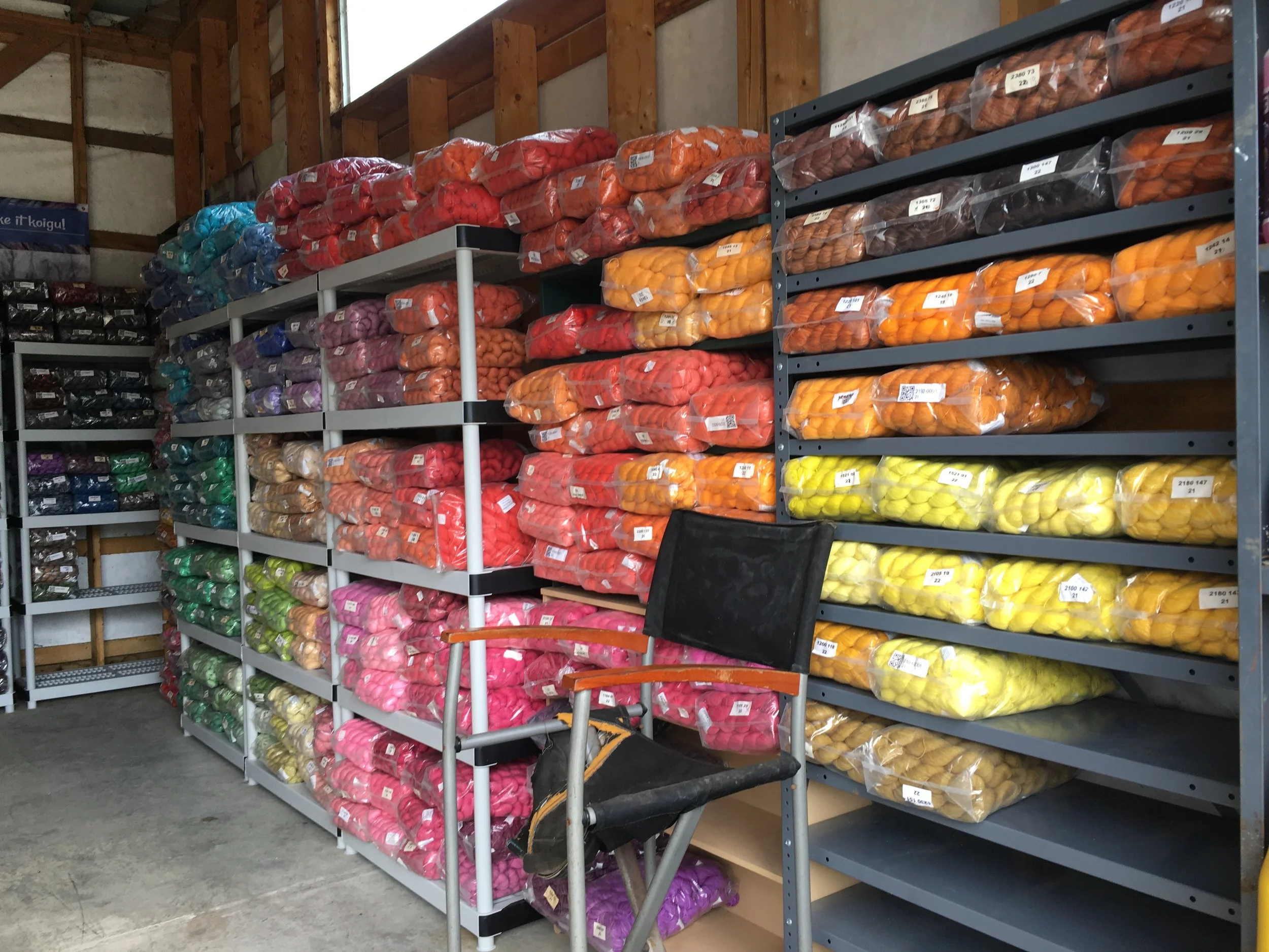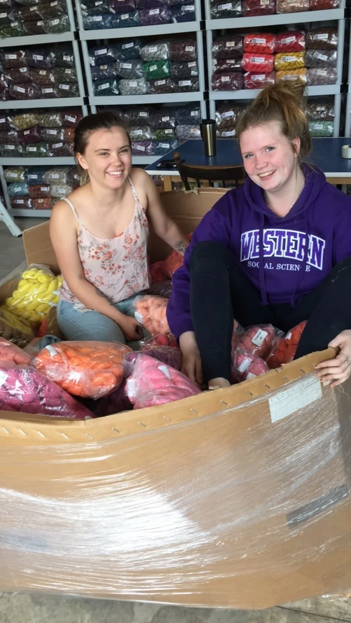 We've been busy organizing our stash of yarns by colour and weight preparing for the tent sale, and its been quite the adventure!