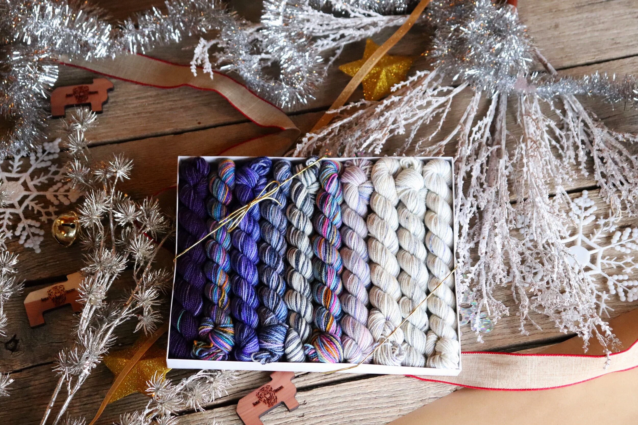 The Snow Queen Pencil Box is our representation of this beauty, with a twist. The Pencil Box features 10 demi skeins of Koigu Sparkle, which brings an added twinkle to your ordinary box. Snow Queen is available at select LYS’s stores and launches in stores Friday November 22. Only available while supplies last.