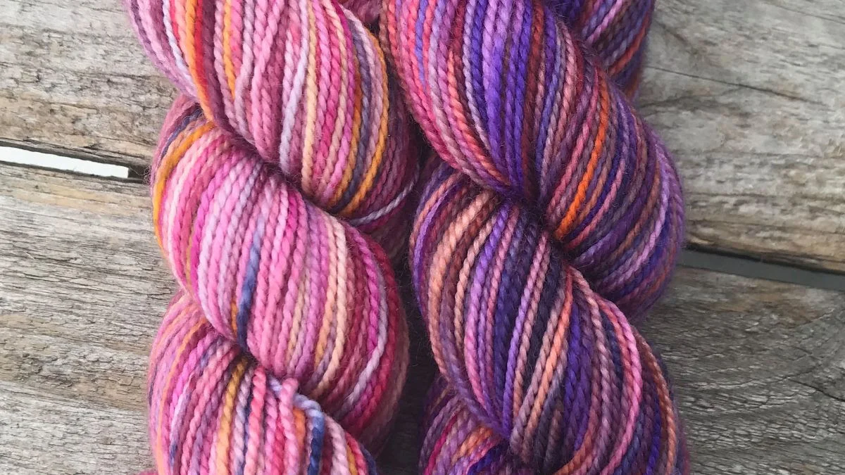 Transitioning to the next skein. The third skein /colour has more purple and still carrying the pink but in a smaller amount.