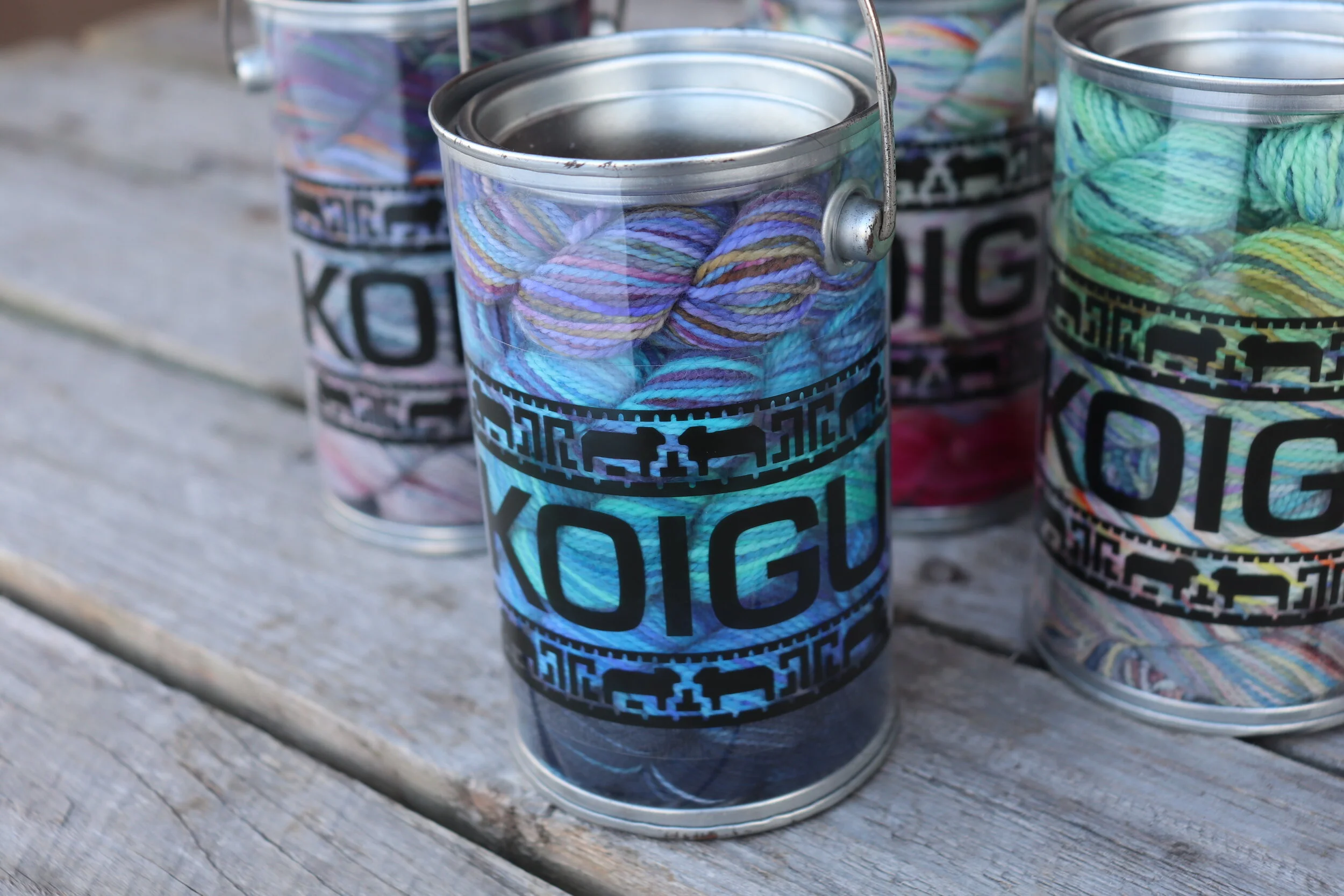 At this years show, we have both a booth and a fashion show! Designs displayed in both will be from Koigu Collection 1.0, Koigu Pencil Box Collection 2, Vill 2 and new to be released Koigu Collection 1.2. Along with these beautiful designs, will have lots of Koigu yarn to shop, along with some new products! Come by the booth to swatch and feel our newest yarn collection, Koigu Origins. The yarn, and natural colours are irresistible! Another new product available this weekend is the Koigu Paint Can, which will have in minimal quantity available at the show, so be sure to stop by before ther’re gone. Don’t worry if you won’t be at the show, will be announcing next week on the blog more information on where you can shop for the Paint Can’s, so be sure to look out for that. As well, we curated an exclusive Koigu Pencil Box just for the show!