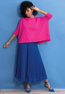 Designed by Maie Landra, in the new issue of Vogue Knitting Late Winter 2020. This top is feature under a Maker Spotlight on Koigu and co-founder Maie Landra titled “The Koigu Story - Three Generations of Hand Dyers.”