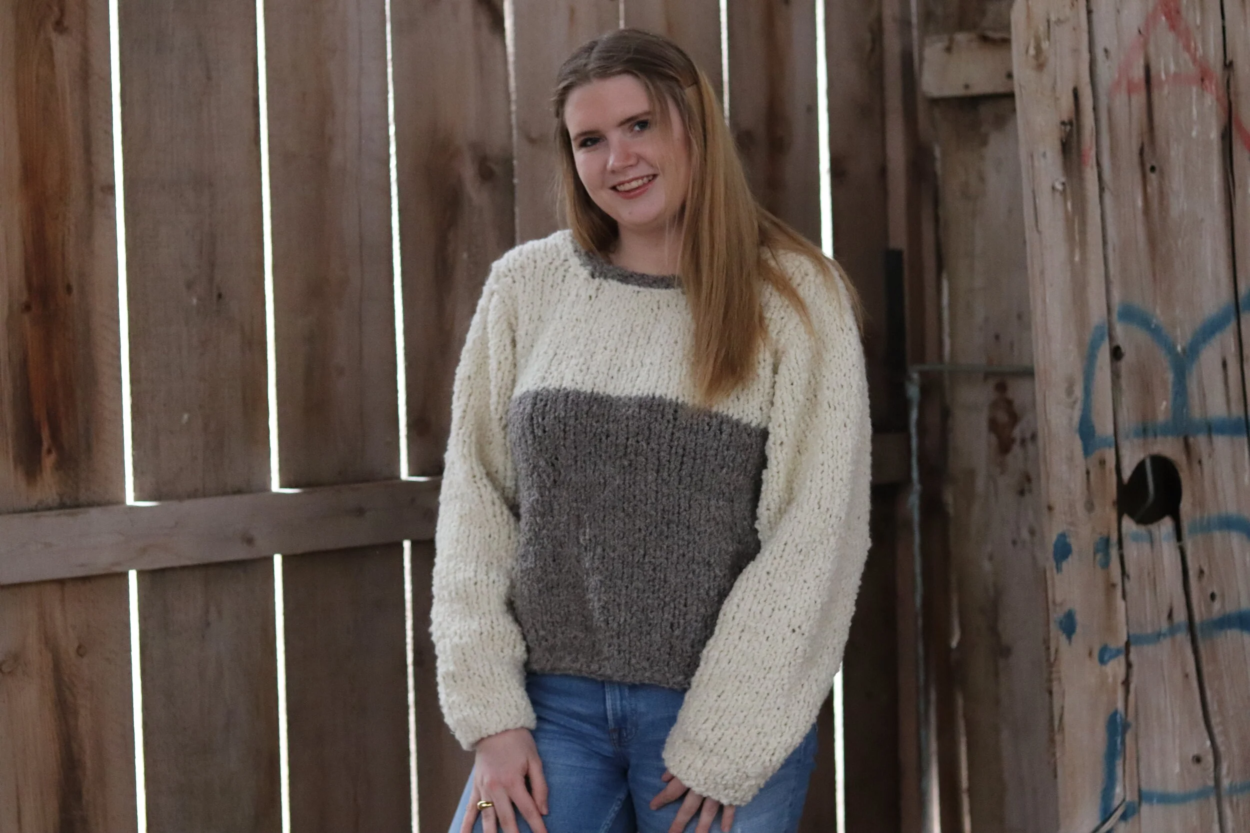 Meet Rosemary: Sweater design using Masham Bouclé, sized from XS-5X.