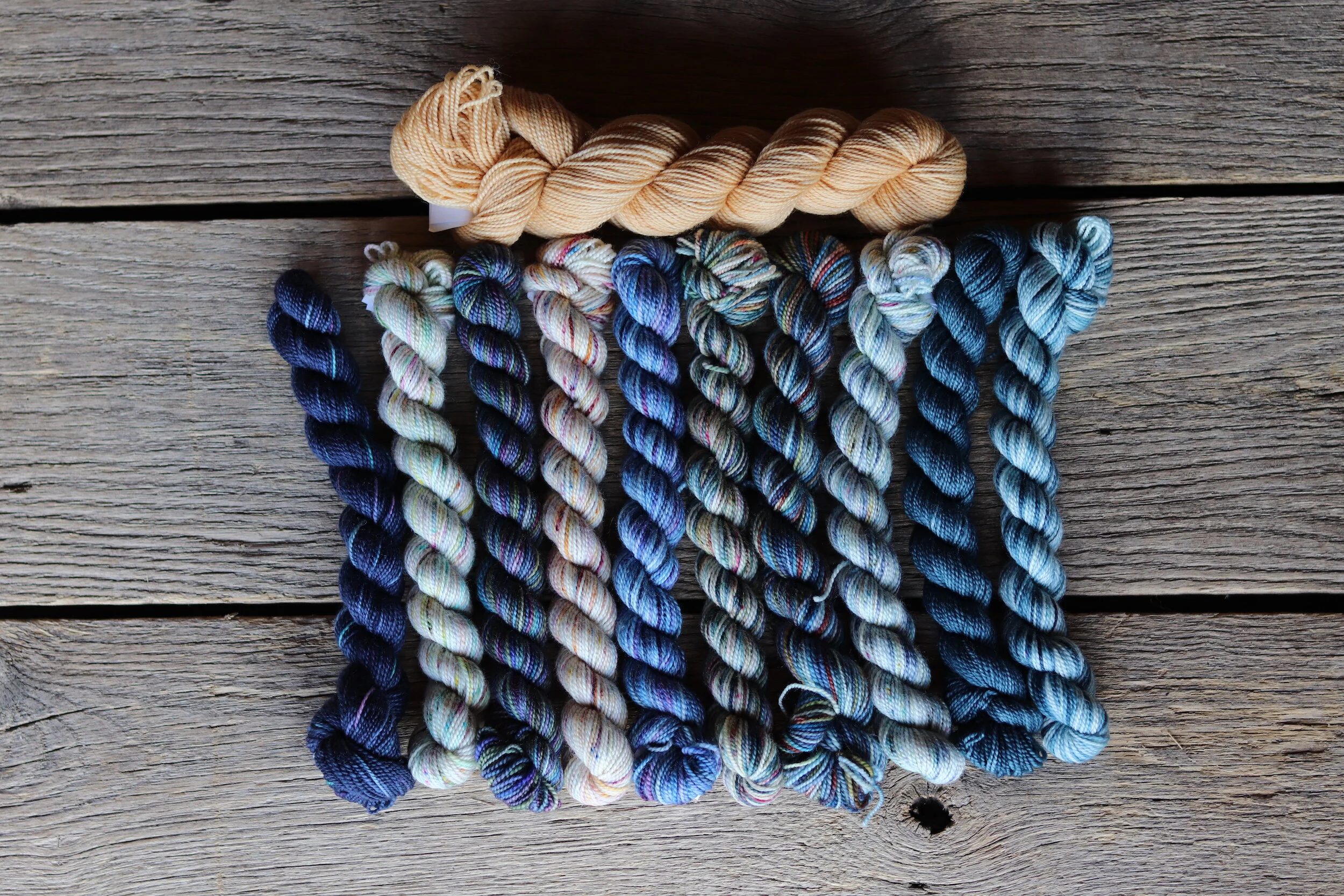 We have curated a few different colour ways to inspire you, but you definitely don’t have to stick to these… Any pencil box colour-way and solid KPM will work!