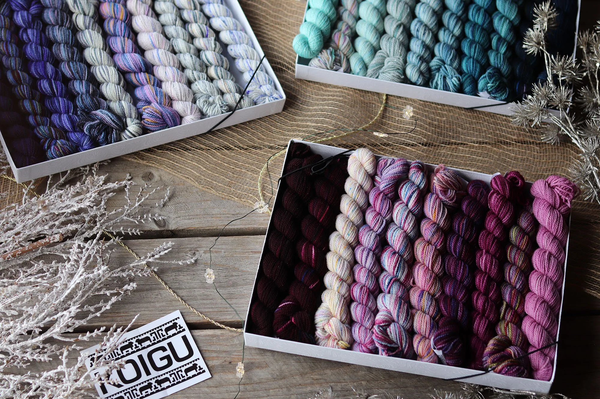 Is this not the most holiday colour of Aura ever. One of our first Koigu Origins Yarns. We are almost out of Aura, and we won’t have anymore after this so get it and gift it while you can.