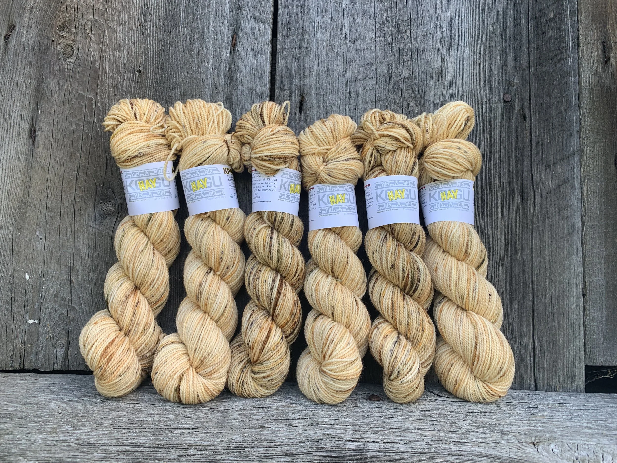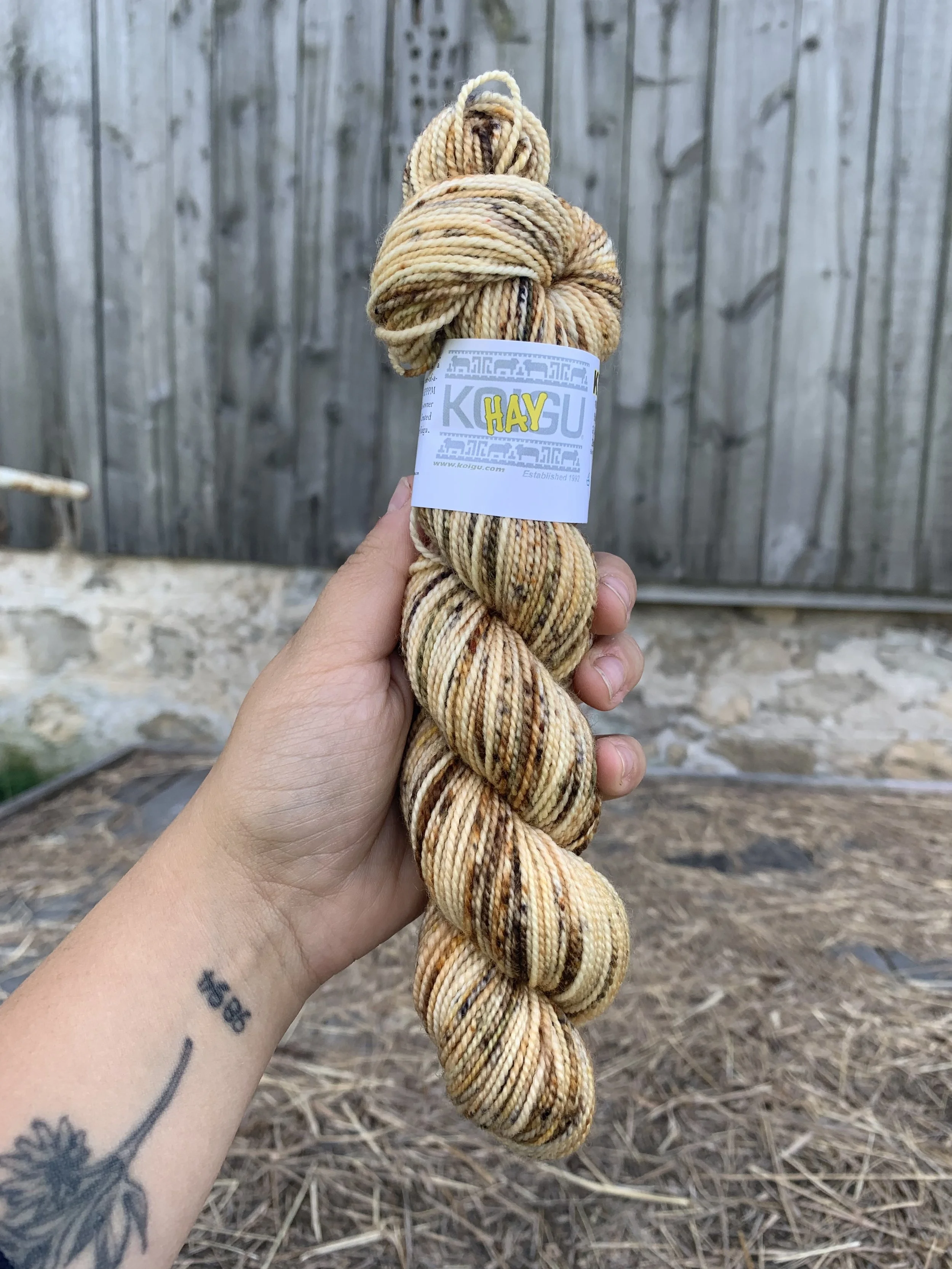 Inspired by hay’s golden hues of yellow and brown, we present to you this month’s Collector Colour: HAY. Complete with speckles, this special edition KPPPM fingering weight colourway will be sure to round out your yarn stash before the sweater weather hits.