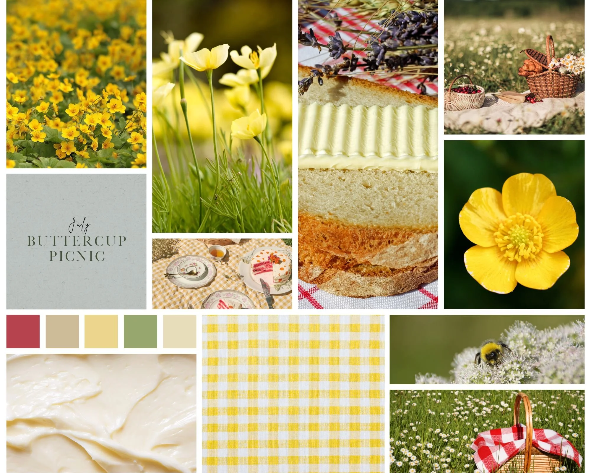 This coming month’s collector colour is inspired by the cheerful picnic season of the summer. Being surrounded by the buzzing of honeybees in the flowers, gingham blankets and sandwiches in the sunshine.
