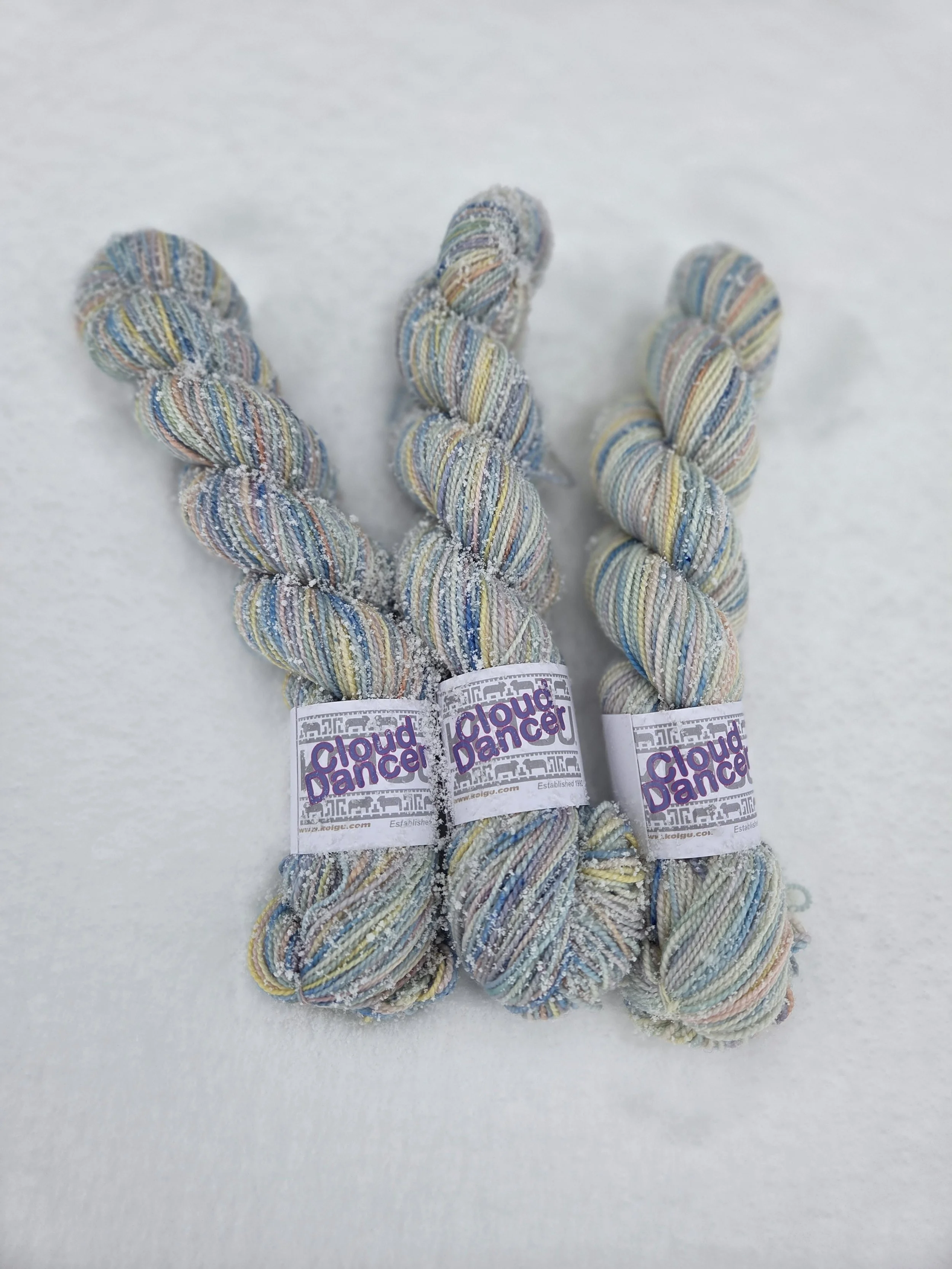 Hand-painted on Koigu Premium 100% merino fingering weight yarn.