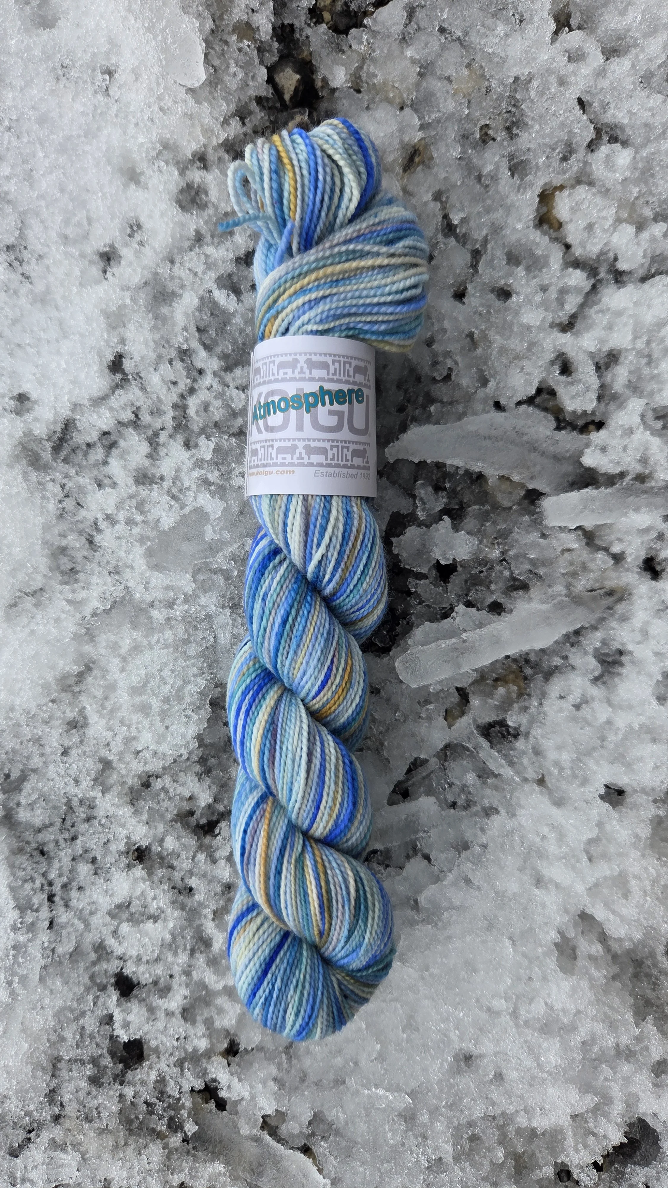 Hand-painted limited edition colourway dyed on Koigu Painter’s Palette Premium 100% Merino fingering weight yarn.
