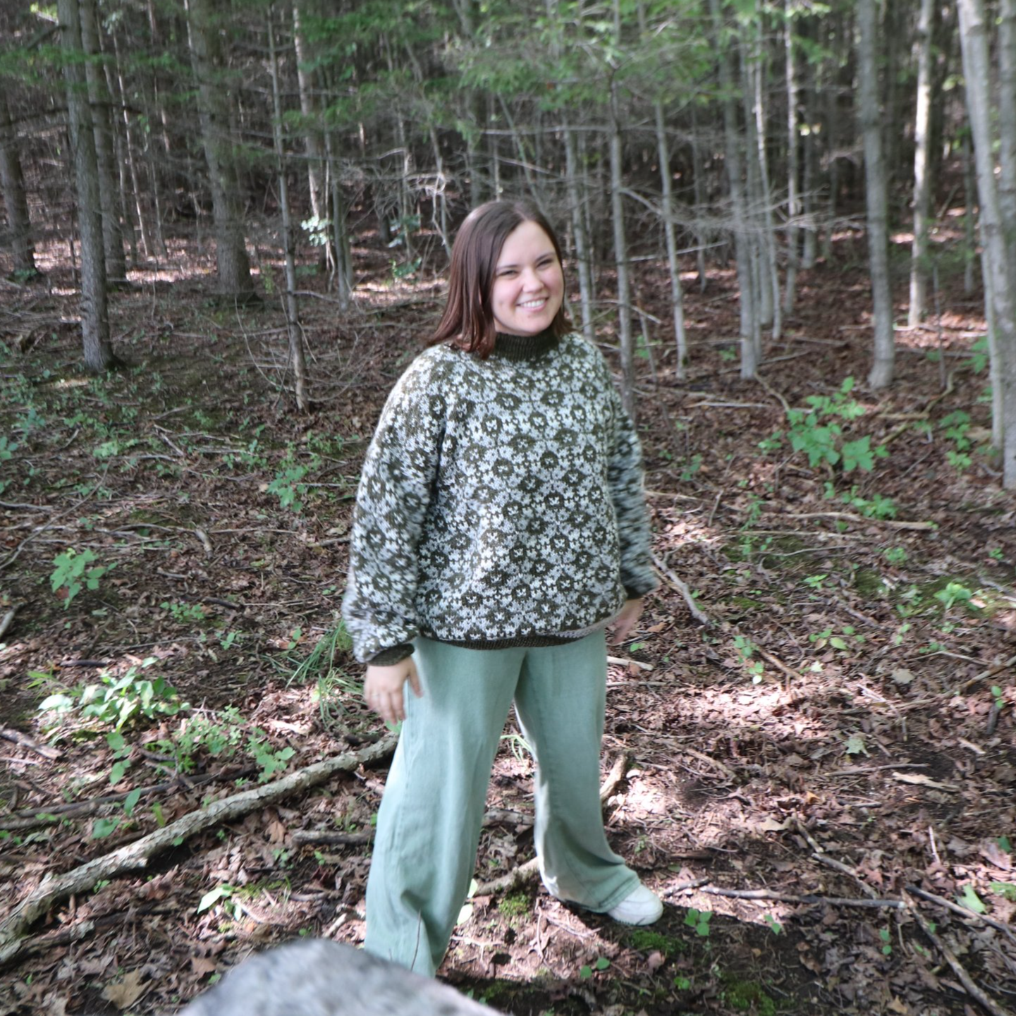 This design beautifully blends traditions, drawing inspiration from both Northern Scandinavian snowflake motifs and Estonian embroidery. It unites two rich textile heritages: the crisp geometry characteristic of Nordic knitwear and the floral, symbolic, and decorative elegance found in Estonian folk embroidery.