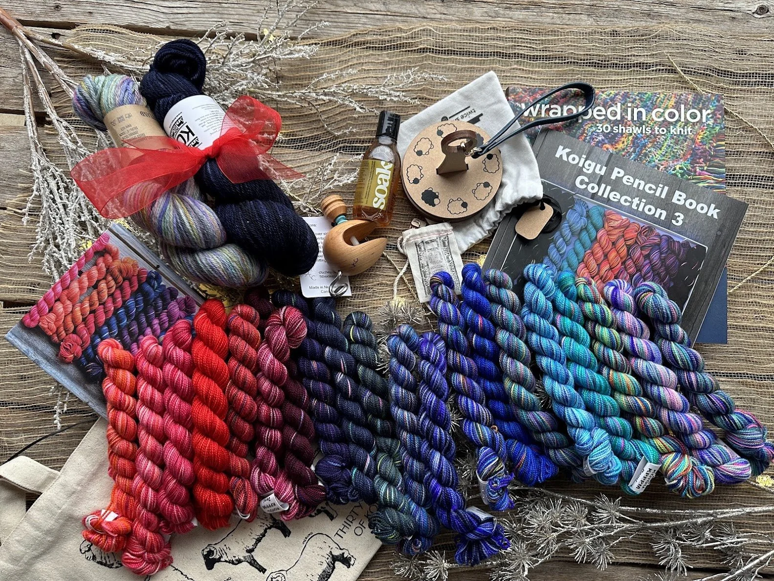 Create a custom dyed colourway or palette with us! Send us inspiration photos or ideas and we will come up with a special colourway or palette named after your store, town, region etc. We can dye a custom colourway on any of our yarn bases or curate a special pencil box or paint can. Email merike@koigu.com and lets dream up something awesome for LYS day!
